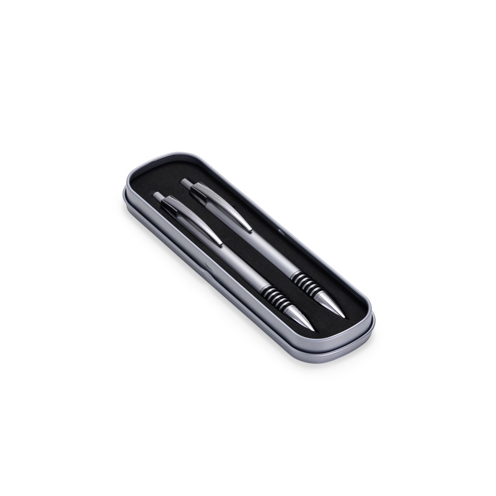 Com este conjunto de caneta e lapiseira metálicas, escrever será uma experiência ainda mais sofisticada e elegante. O estojo em metal que as acomoda, possui revestimento em espuma para evitar riscos. A caneta possui carga esferográfica azul de 1.0mm, com acionamento por clique, já a lapiseira possui grafite 0.7mm.