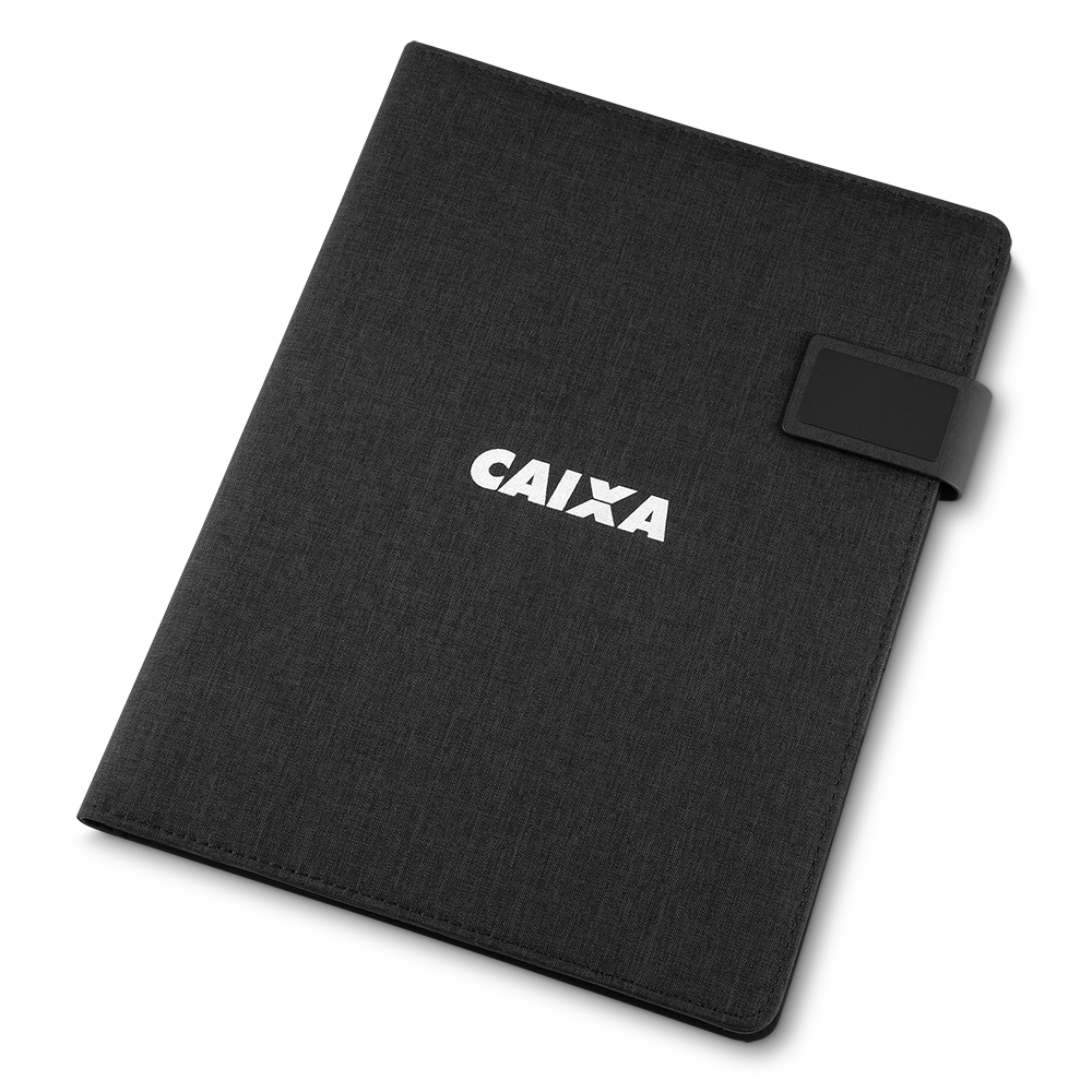 Pasta executiva com bloco de anotações, suporte para celular, caneta, porta cartões, capa com material sintético, 20 folhas (27x21cm) com Fechadura Magnética.
