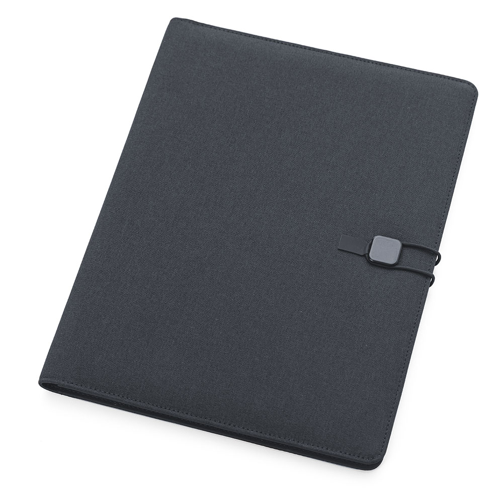 Pasta executiva com capa almofadada em tecido poliéster, contendo: