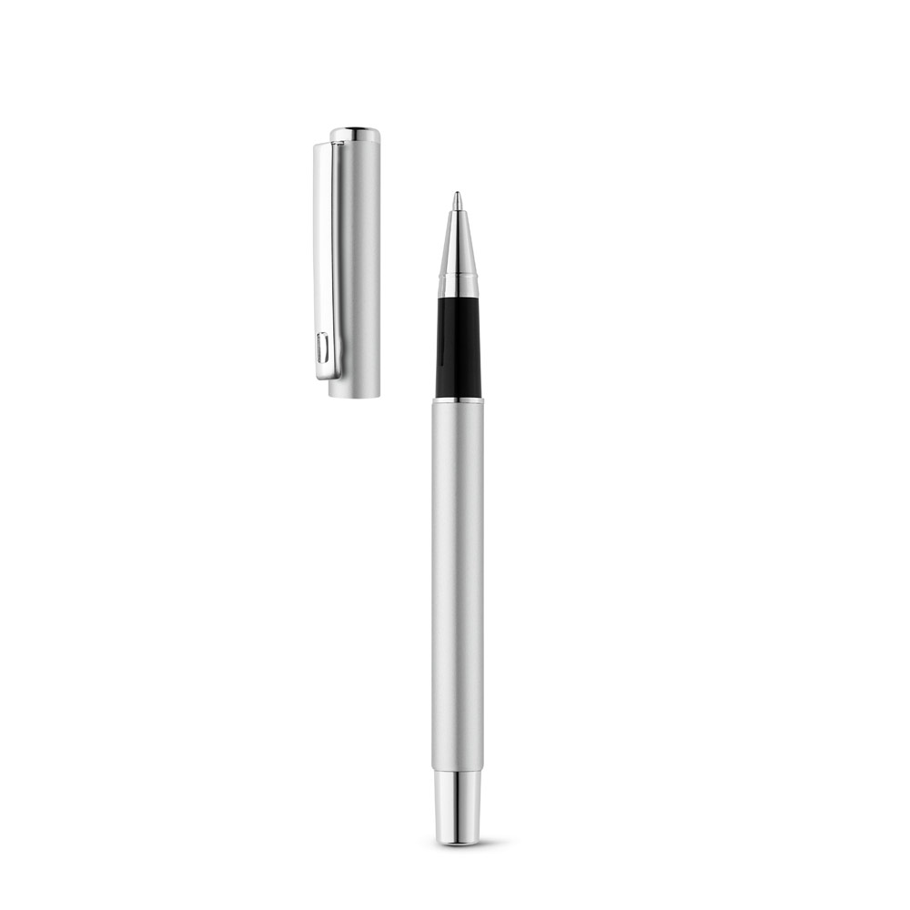 Roller em alumínio com clipe de metal. Escrita em preto. ø10 x 136 mm
