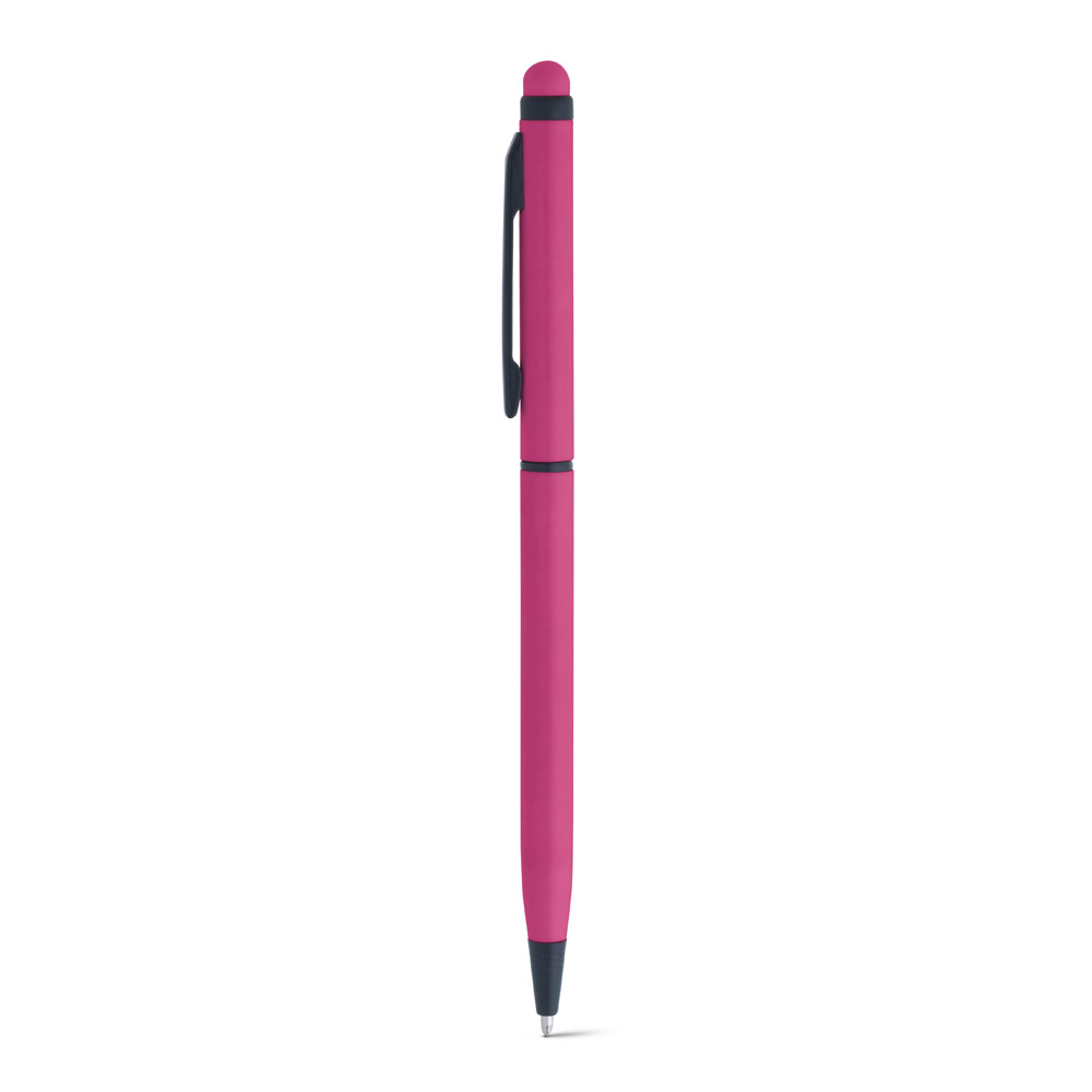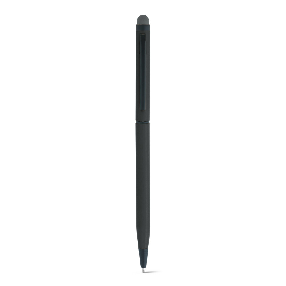 Esferográfica em alumínio com mecanismo twist, clipe de metal e ponteira touch. Escrita em azul até 1.5 km. ø8 x 137 mm