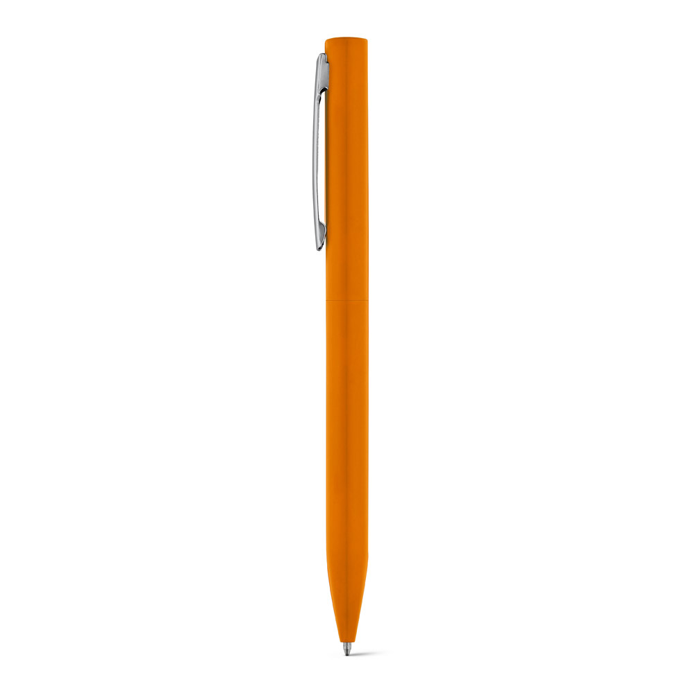 Esferográfica em alumínio com clipe em ferro com cromagem brilhante. A esferográfica tem mecanismo twist e escrita em azul até 1.5 km. Fornecido com estojo presente desmontado. ø10 x 138 mm | Caixa: 175 x 41 x 20 mm