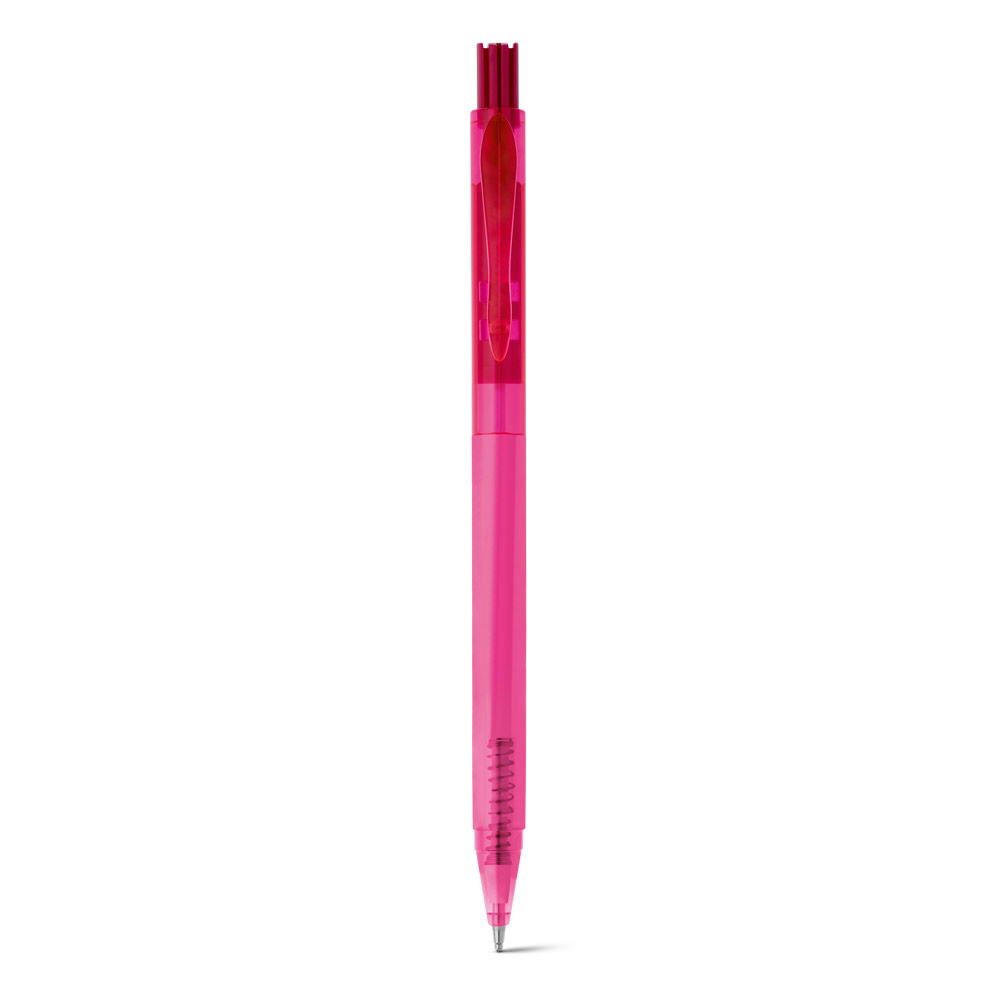 Esferográfica em ABS com acabamento translúcido. Escrita em azul até 1.5 km. Produto certificado de acordo com a portaria Inmetro nº423 de 8/out/2021. ø9 x 141 mm