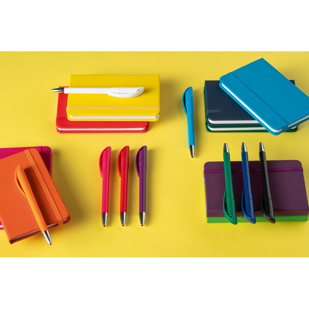 Esferográfica em ABS com acabamento brilhante. Ponteira cromada e clipe de grande dimensão. Escrita em azul até 1.5 km. Produto certificado de acordo com a portaria Inmetro nº423 de 8/out/2021. ø12 x 142 mm