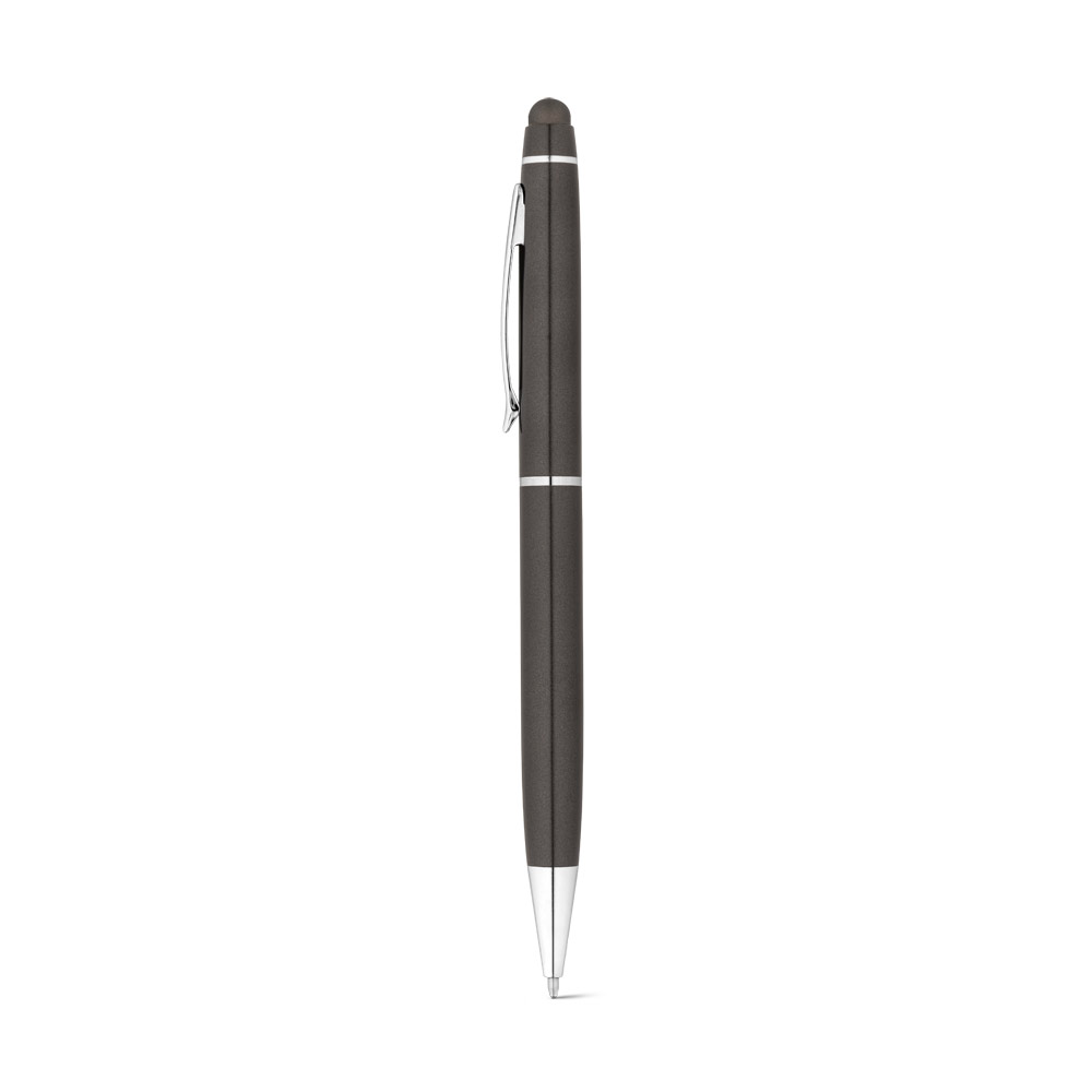 Esferográfica em alumínio com ponteira touch e mecanismo twist. Escrita em azul até 1.5 km. Fornecida com estojo de oferta desmontado. ø10 x 141 mm | Estojo: 150 x 15 x 19 mm