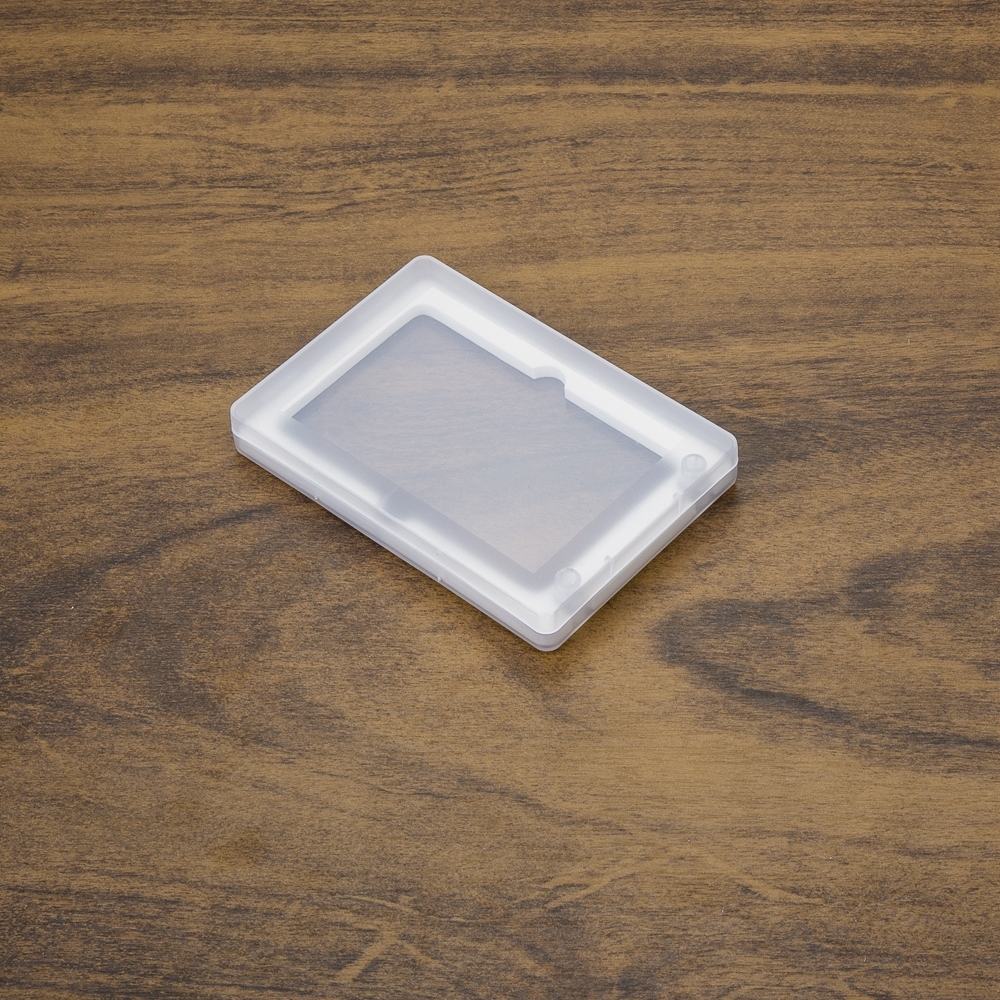 Estojo plástico para pen card transparente, parte interna revestida com espuma e fecha por encaixe.