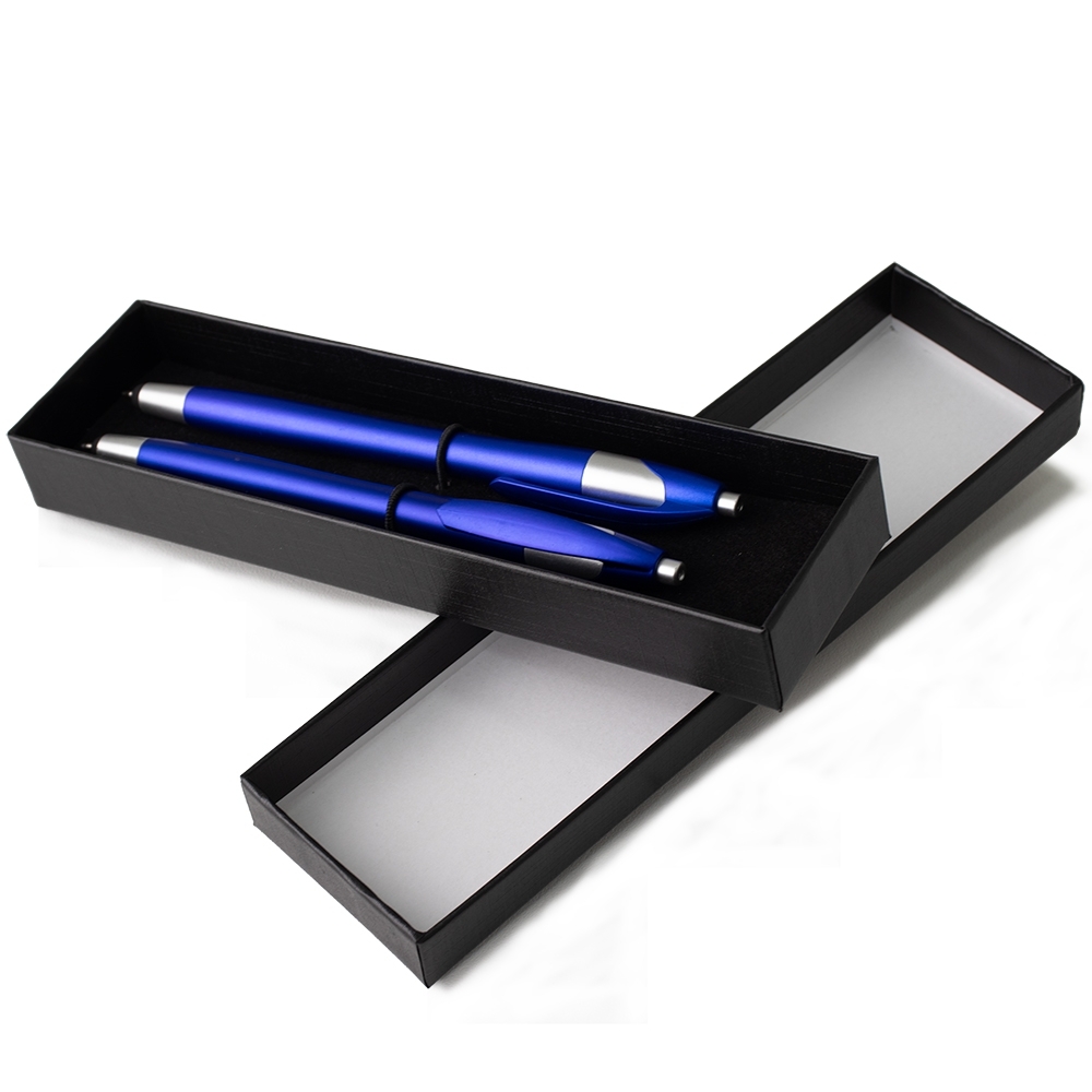 Estojo de papelão para duas canetas. Parte interna revestida com veludo e possui elástico para fixar as canetas. OBS.: NÃO ACOMPANHA CANETA. FOTO ILUSTRATIVA.