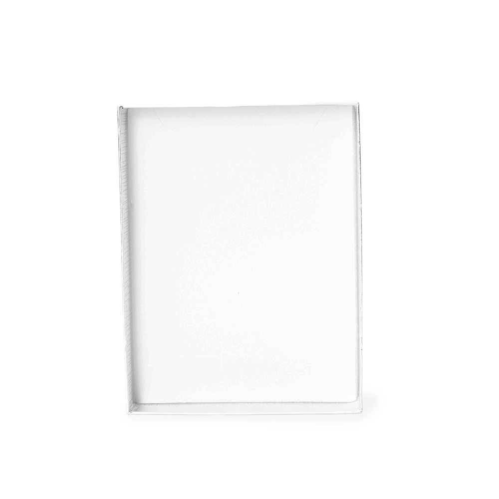 Caixa para presente feita em papelão com acabamento levemente texturizado e laço decorativo em cetim colado na tampa. Conta ainda com berço removível em espuma com ranhuras.
