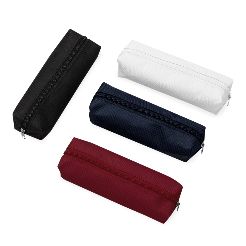 Estojo de nylon inteiro colorido com zíper e parte interna emborrachada.