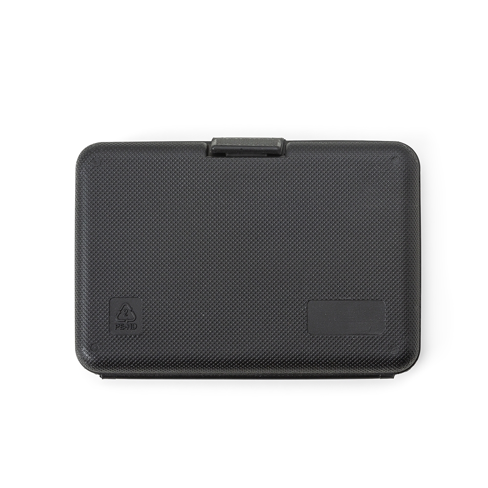 Kit ferramenta 11 peças em estojo plástico. Maleta plástica com detalhe retangular no centro frontal e verso com o detalhe na lateral inferior, possui texturização no estojo e uma trava superior. Acompanha: conjunto de 5 chaves Allen, trena de 1 metro, chave teste, estilete, chave dupla(Phillips e Fenda), alicate e cabo plástico para encaixe da chave dupla.