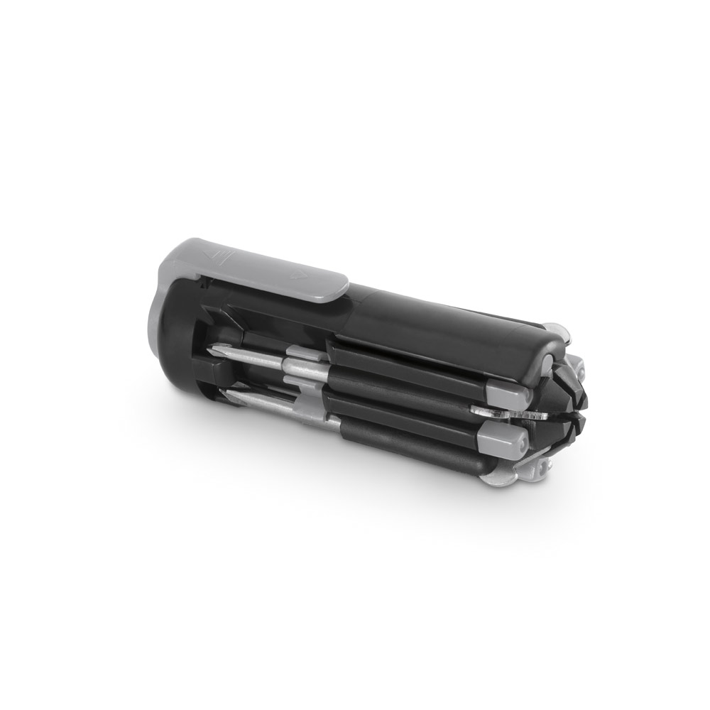 Conjunto de ferramentas em ABS com clipe, 6 LEDs e 5 pontas diferentes removíveis. Incluso 2 pilhas AAA. 90 x 30 x 35 mm