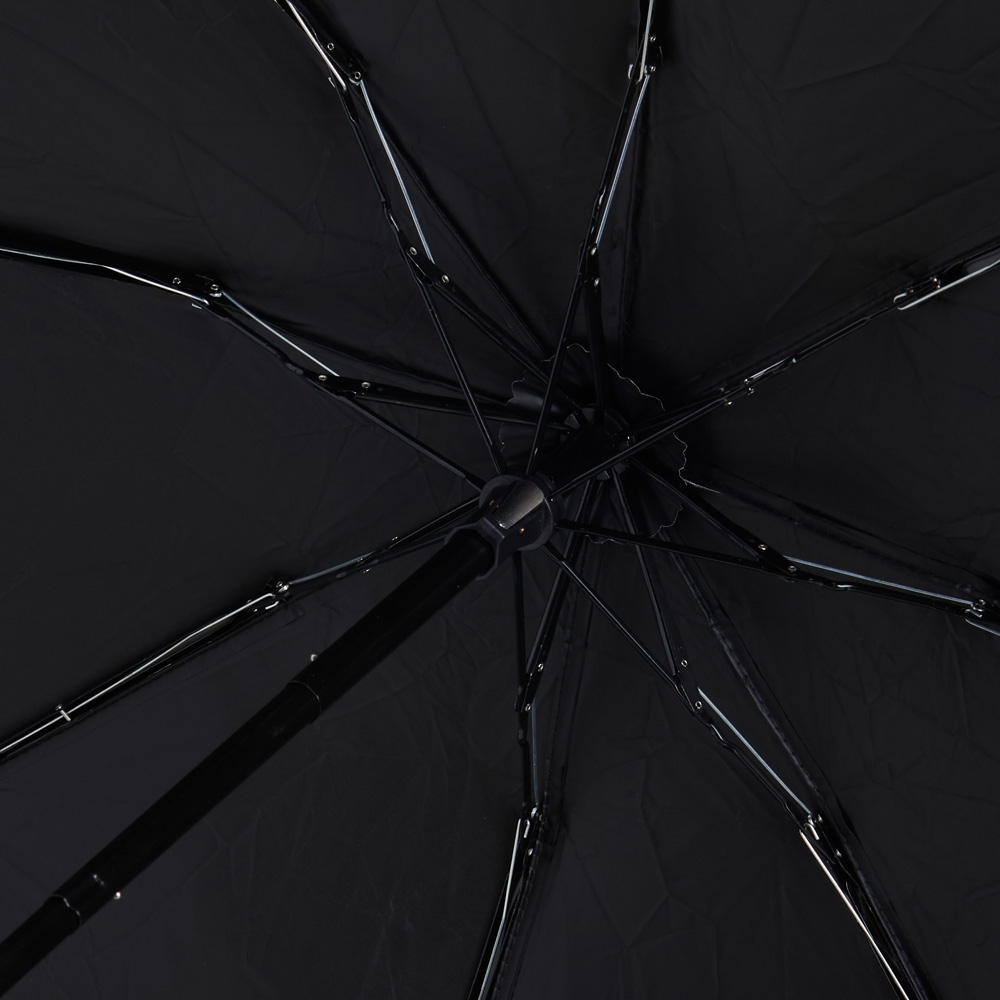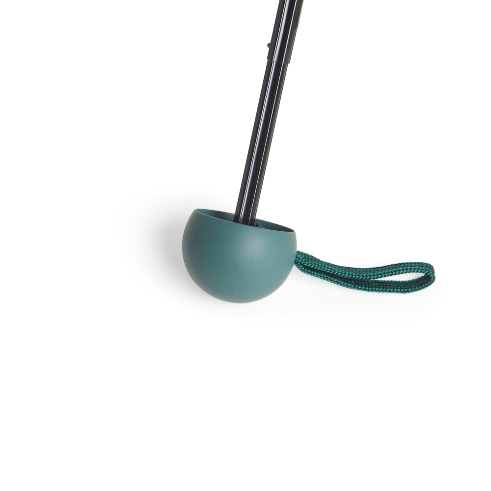 Guarda-chuva manual cápsula em poliéster de impacto impermeável e proteção UPF 50. Possui tecido interno em vinil com 8 varetas e estrutura em aço, pegador, botão de abertura e e alça de Nylon. Acompanha estojo protetor com alça.