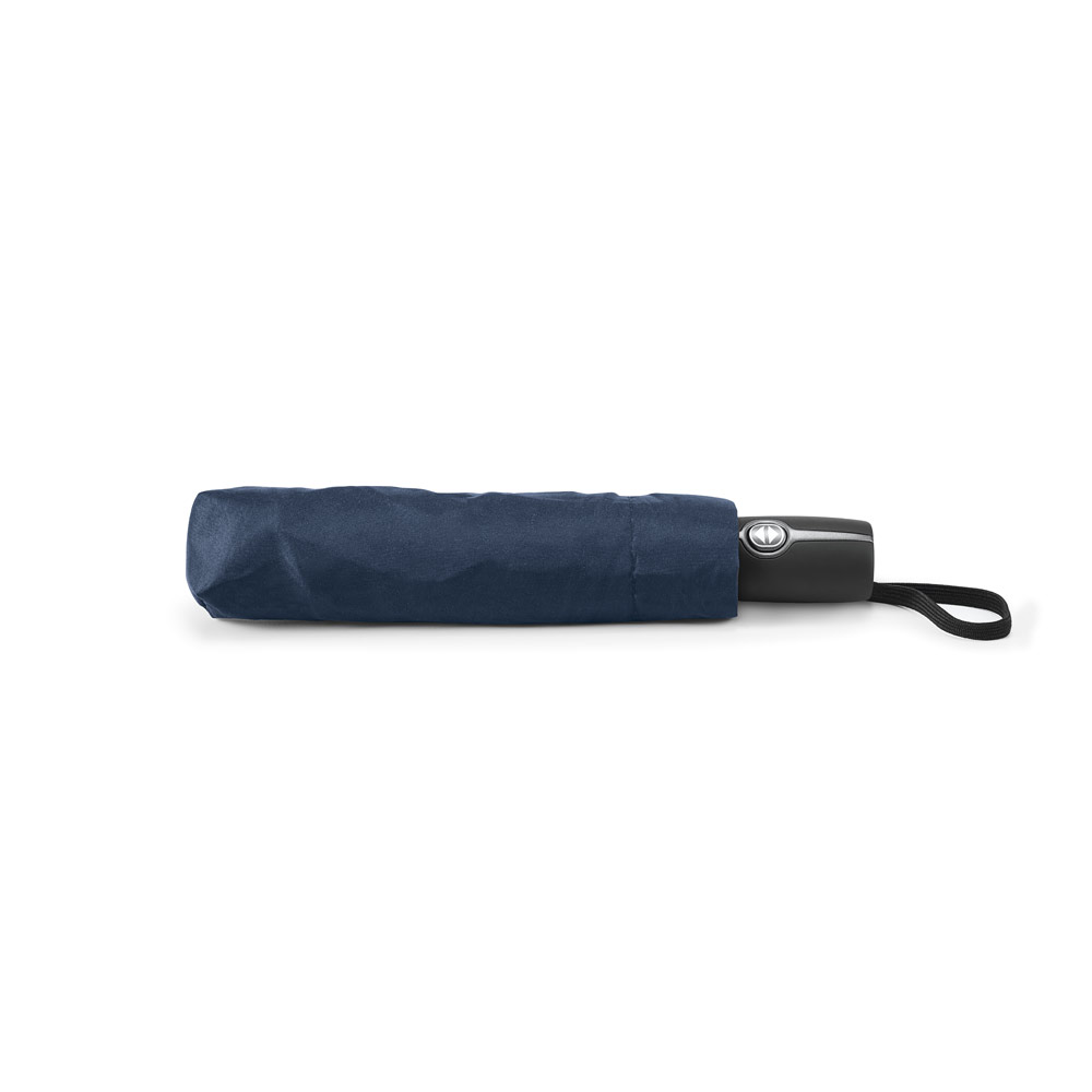 Guarda-chuva em poliéster pongee 190T, com pega revestida em borracha. O guarda-chuva, dobrável em 3 secções, tem abertura e fecho automático e é à prova de vento. Fornecido em bolsa. ø970 x 280 mm | Bolsa: ø50 x 250 mm
