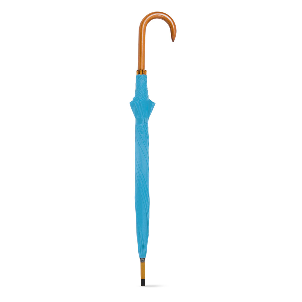 Guarda-chuva em poliéster 190T, com haste em metal e pega em madeira. O guarda-chuva tem abertura automática. ø1040 x 885 mm