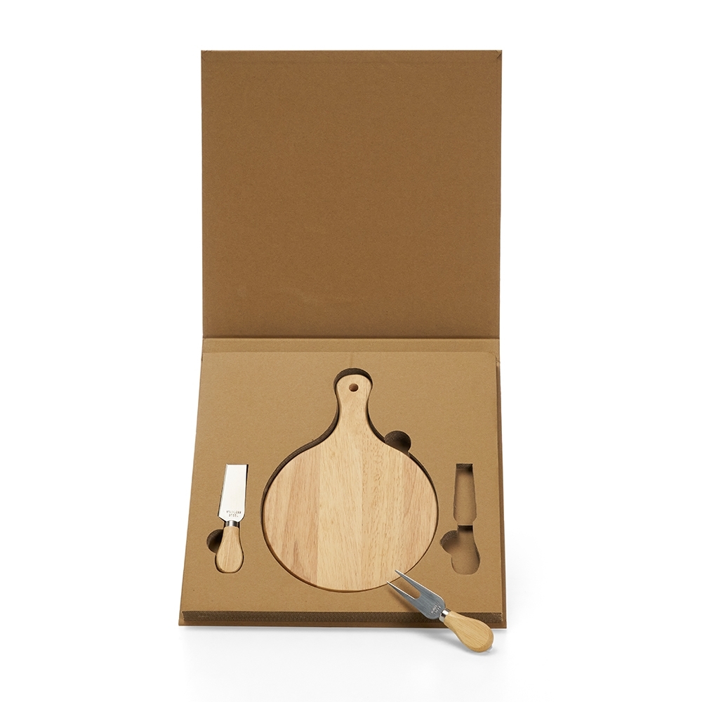 n[vc_row][vc_column width=”2/3″]n[vc_column_text]Kit queijo 3 peças em estojo kraft . Contém faca com ponta, faca reta e tábua. Acompanha embalagem de papelão.n n n nn n Altura : 24,8 cmn n n Largura : 34,6 cmn n n n n Espessura : 2,5 cmn n n n Medidas aproximadas para gravação (CxL): 23 cm x 32 cmn n n n Peso aproximado (g): 810nnOs mimos personalizados são uma excelente opção para presentear seus clientes e colaboradores, além de ser uma forma eficiente de divulgar sua marca. E um dos produtos mais procurados são os kits de queijo personalizados.nnO kit queijo personalizado é um item sofisticado e elegante, que pode ser utilizado em diversas ocasiões, como eventos corporativos, brindes de final de ano, presentes de aniversário, entre outros. Ele é composto por uma tábua de queijos, facas especiais e um suporte para as facas, tudo personalizado com a sua marca.nnAlém de ser um presente útil e de bom gosto, o kit queijo personalizado também é uma forma de valorizar a cultura gastronômica, já que o queijo é um alimento muito apreciado em todo o mundo. E com a personalização, você pode transmitir a identidade da sua empresa de forma criativa e original.nnA personalização do kit queijo pode ser feita de diversas formas, como a gravação a laser, a impressão em silk-screen ou a aplicação de adesivos. Você pode escolher a opção que mais se adequa ao seu orçamento e ao estilo da sua marca.nnAlém disso, o kit queijo personalizado pode ser acompanhado de outros itens, como vinhos, cervejas artesanais, chocolates, entre outros. Isso torna o presente ainda mais completo e especial.nnAo presentear seus clientes e colaboradores com um kit queijo personalizado, você está demonstrando o seu cuidado e atenção com eles, além de fortalecer o relacionamento com a sua marca. E isso pode trazer benefícios a longo prazo, como a fidelização dos clientes e o aumento da visibilidade da sua empresa.nnPortanto, se você está em busca de um presente sofisticado e personalizado, o kit queijo é uma excelente opção. Entre em contato conosco e solicite um orçamento personalizado para a sua empresa. Nós garantimos a qualidade dos nossos produtos e a satisfação dos nossos clientes.n