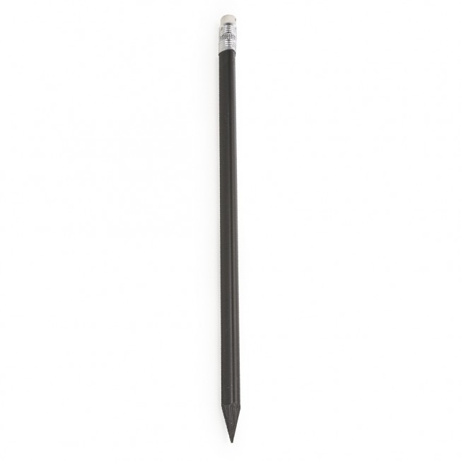 Lápis grafite triangular com borracha. Modelo inteiro produzido em grafite, possui guarnição prata com borracha branca.