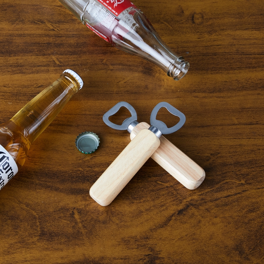 Abridor de Garrafa Madeira.: Abridor metálico com cabo de madeira. Largura :  4 cm ... O mimo personalizado ideal para personalizar sua marca.