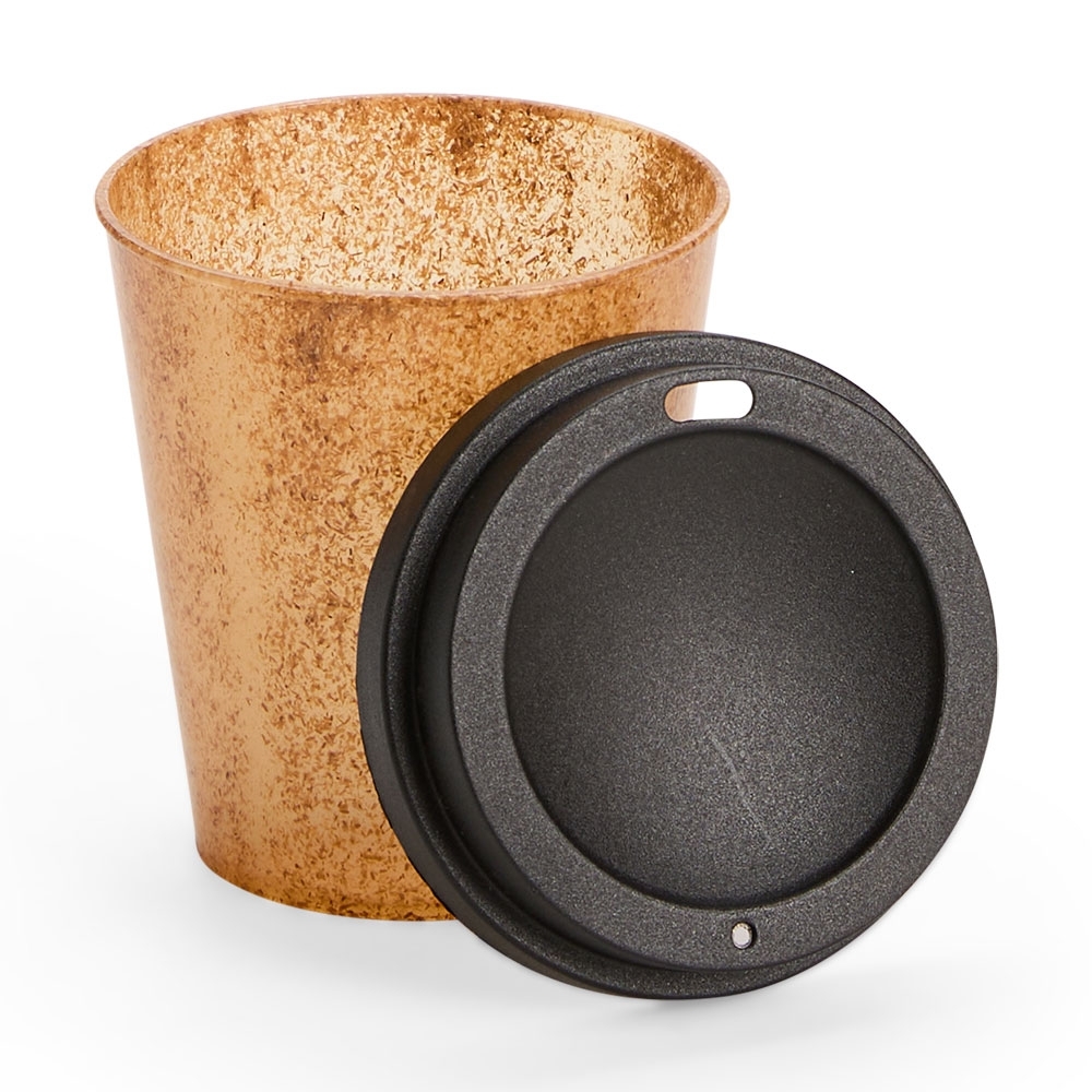 Copo feito em fibra de coco com capacidade de até 350ml. Possui tampa plástica com bocal.