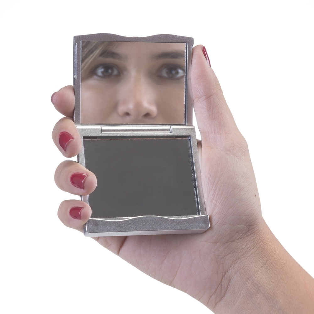 Espelho retangular duplo sem aumento, material em plástico resistente com superfície ondulada(área para gravação não é plana).