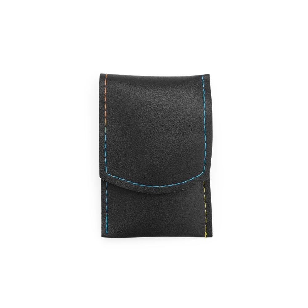 Kit manicure 7 peças em estojo de couro sintético. Contém: tesoura, 2 cortadores de unha, pinça, lixa, empurrador de cutícula e espátula para ouvido.
