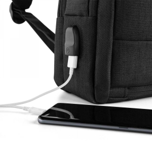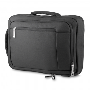 [vc_row][vc_column width=”2/3″]n[vc_column_text]Mochila e Pasta para notebook tem tecido poliéster.Pode ser usada como pasta ou como mochila.Alça do ziper com furo para cadeado. Parte externa:Possui um conector USB e um conector P2 p/ fone de ouvido, ligado internamente à mochila por meio de cabos.Dois bolsos externo com ziper protegido.Alça de mão e ombro acolchoadas.Bolso para guardar a alça de ombro.Engate para mala de viagem.Parte interna:Compartimento p/ notebook acolchoado. 39x29cm.Cinto para travamento do notebook.Compartimento principal medindo 41x30cm.Tamanho total do Notebook – 17¨Divisória com dois bolsos.Forrada.n