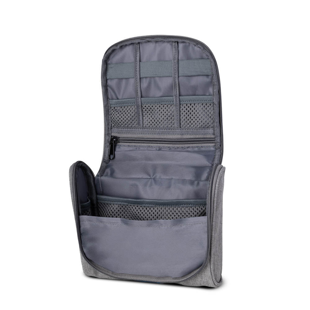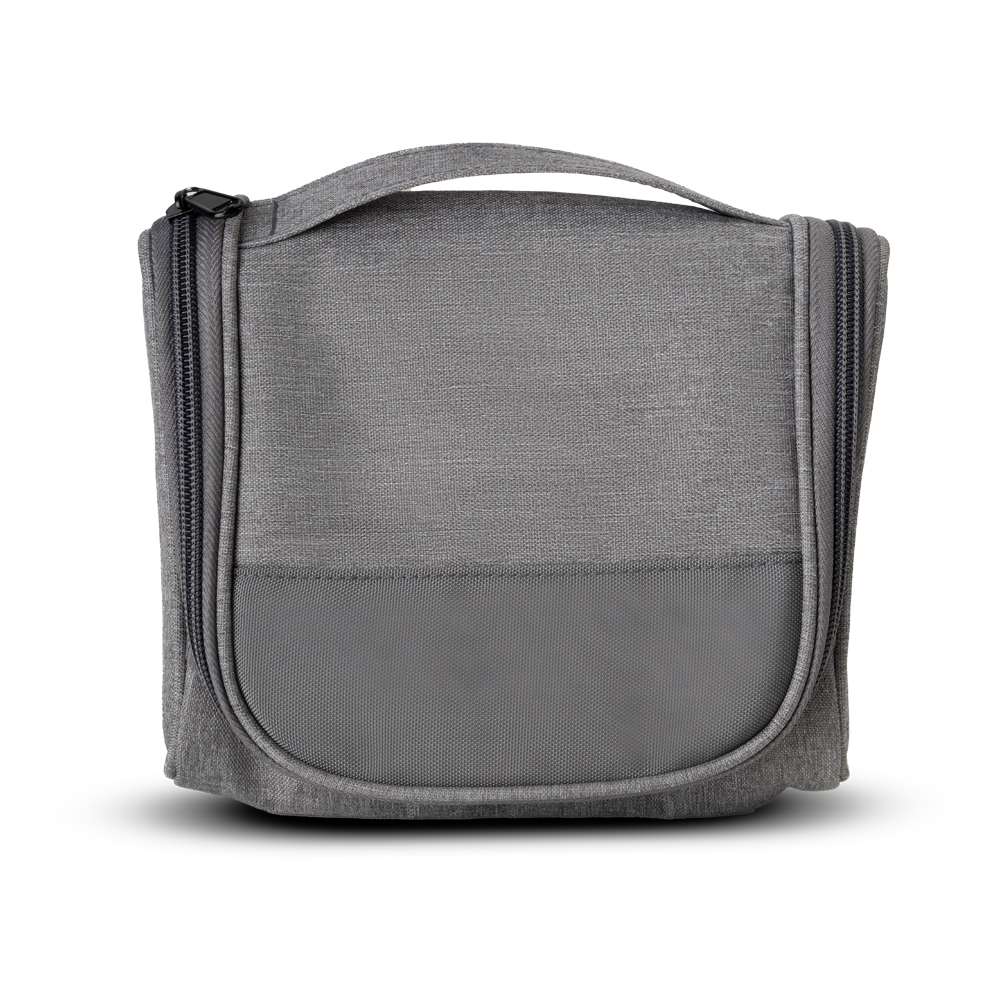 Necessaire confeccionada em poliéster 300D no material externo e poliéster 210D/Mesh no material interno. Fechamento por zíper e divisórias internas. Capacidade de 1,7L