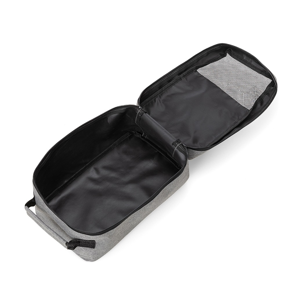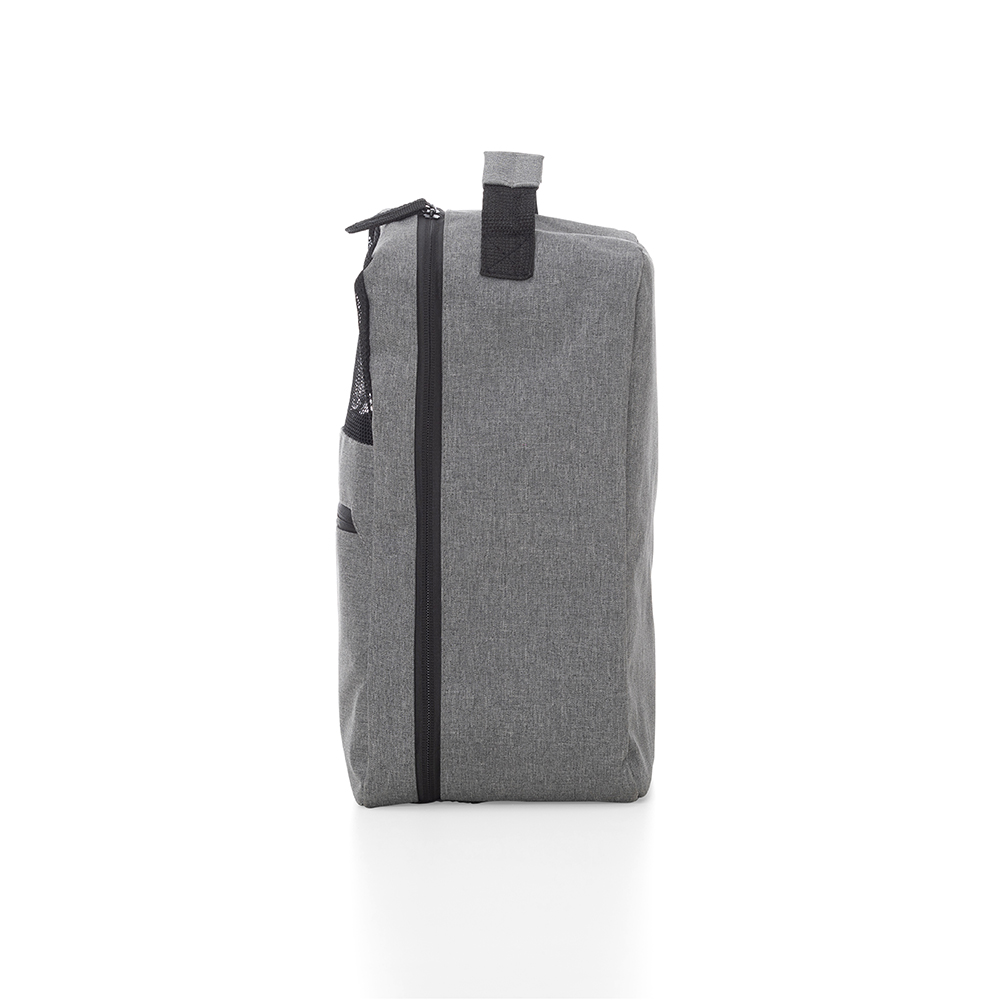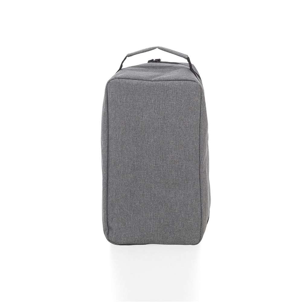 Porta Tênis em tecido poliéster 300D com bolso frontal e alça de mão.
