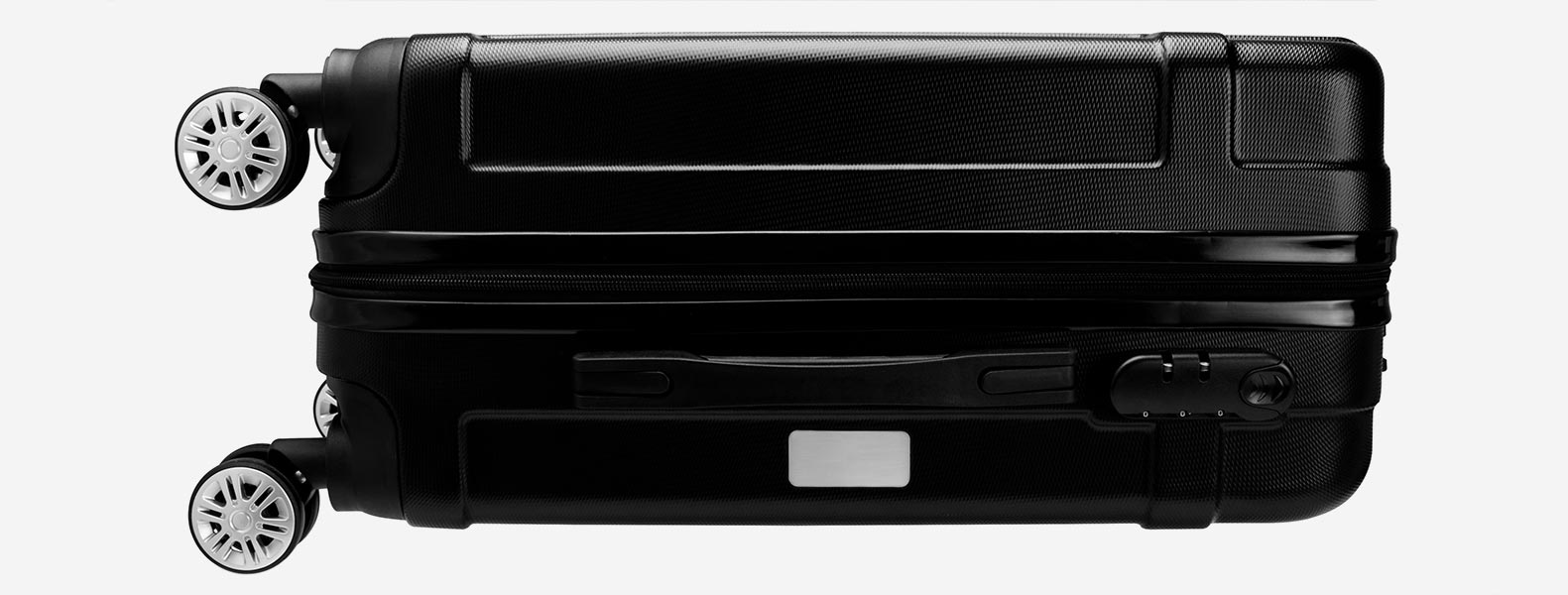 [vc_row][vc_column width=”2/3″][vc_column_text]Mala para Viagem preta em ABS: Conta com 4 rodinhas 360º de Ø 5,5cm emborrachada, alça lateral, alça superior, alça retrátil em alumínio com dois estágios e altura máxima aberta de 102cm, duas divisões internas com zíper, elástico para melhor acomodação da bagagem e cadeado com senhaPOSSIBILIDADES DE PERSONALIZAÇÃO DO PRODUTO