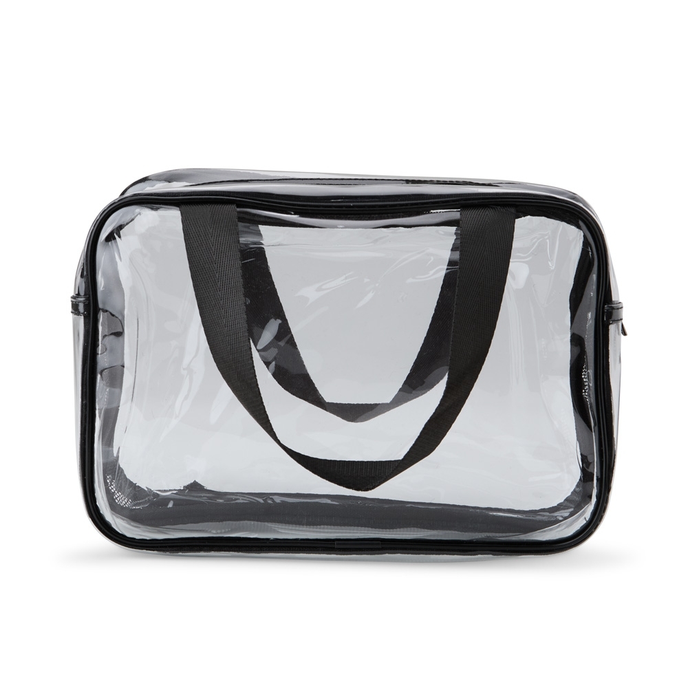 Nécessaire de PVC. Possui dois compartimentos e duas alças laterais de mão em nylon. Altura :  20 cm Largura :  30,5 cm Profundidade :  13cm Medidas aproximadas para gravação (CxL):  19,5 cm x 30,5 cm Peso aproximado (g):  310