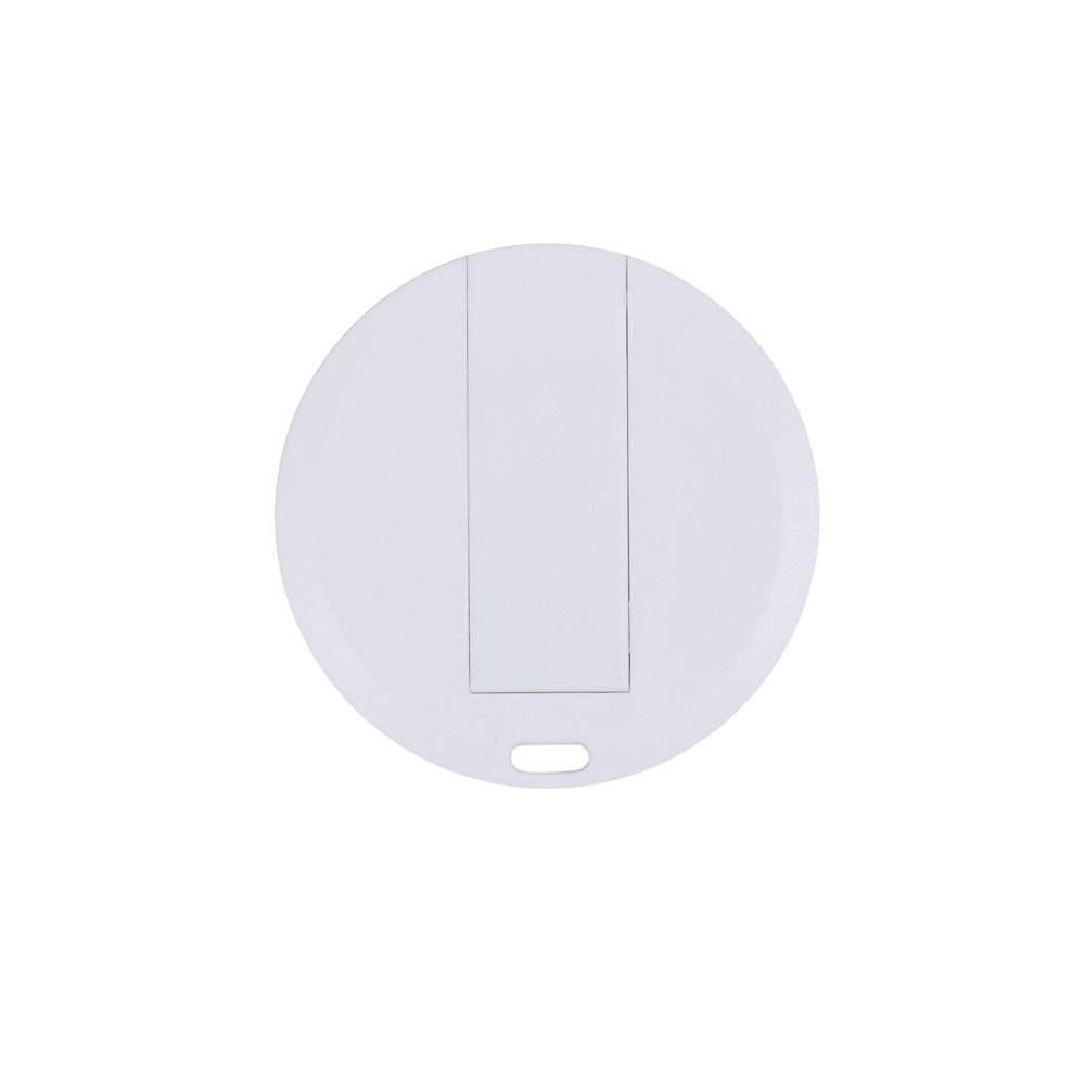 Carcaça redonda para pen card, basta empurrar o suporte para encaixar a memória COB. Parte inferior com um “furo” para colocar algum cordão.