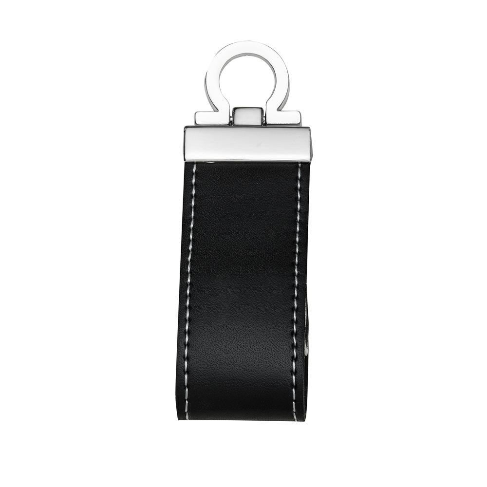 Pen drive 4GB/8GB/16GB de couro sintético com costura, possui botão e detalhes prata(verso liso). Parte inferior possui “argola” para utilizar como chaveiro.