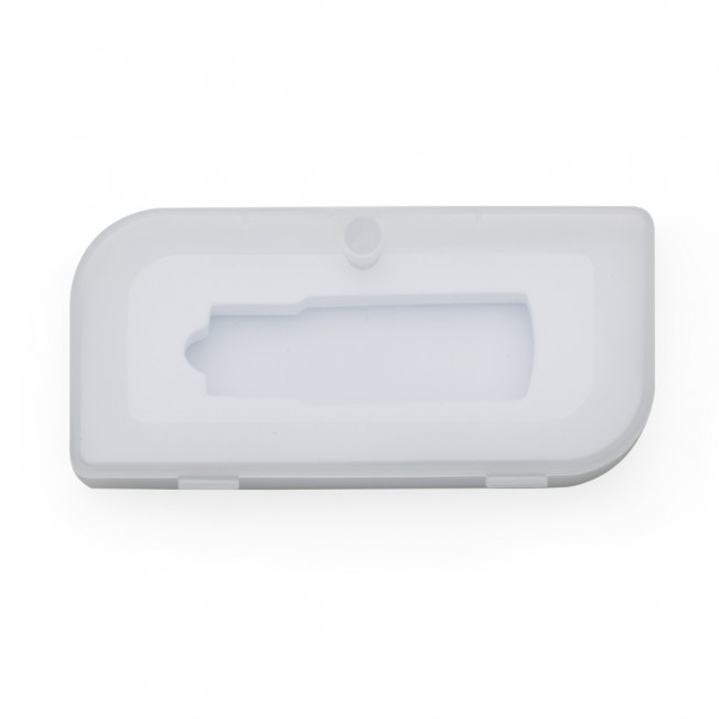 [vc_row][vc_column width=”2/3″]n[vc_column_text]Estojo plástico para pen drive com abertura de imã, revestimento interno de espuma. n Largura : 4,4 cmn n n n Comprimento : 9,3 cmn Medidas aproximadas para gravação (CxL): 7,7 cm x 3 cmn n Peso aproximado (g): 13n