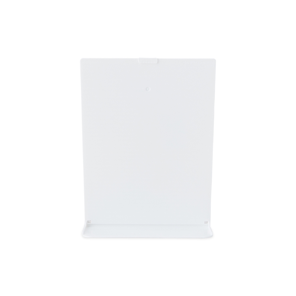 Expositor porta retrato A5 feito em poliestireno com placa acrílica.