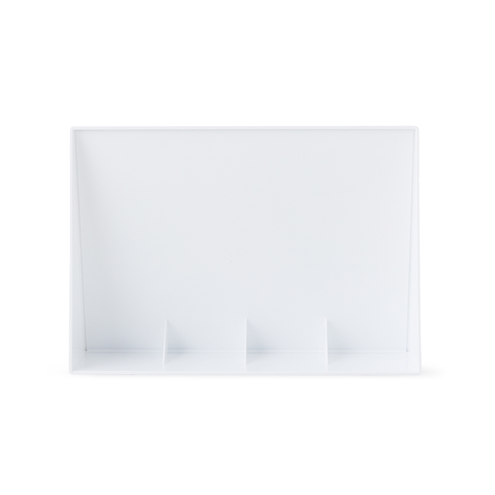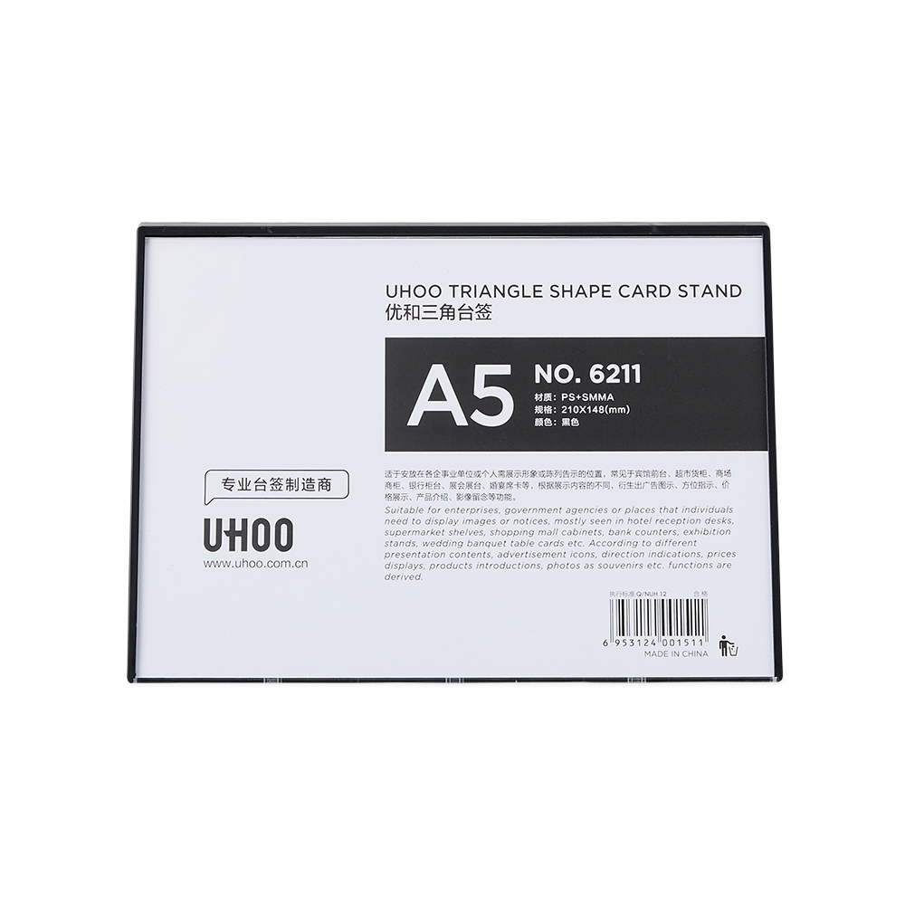 Expositor porta retrato A5 feito em poliestireno com placa acrílica.