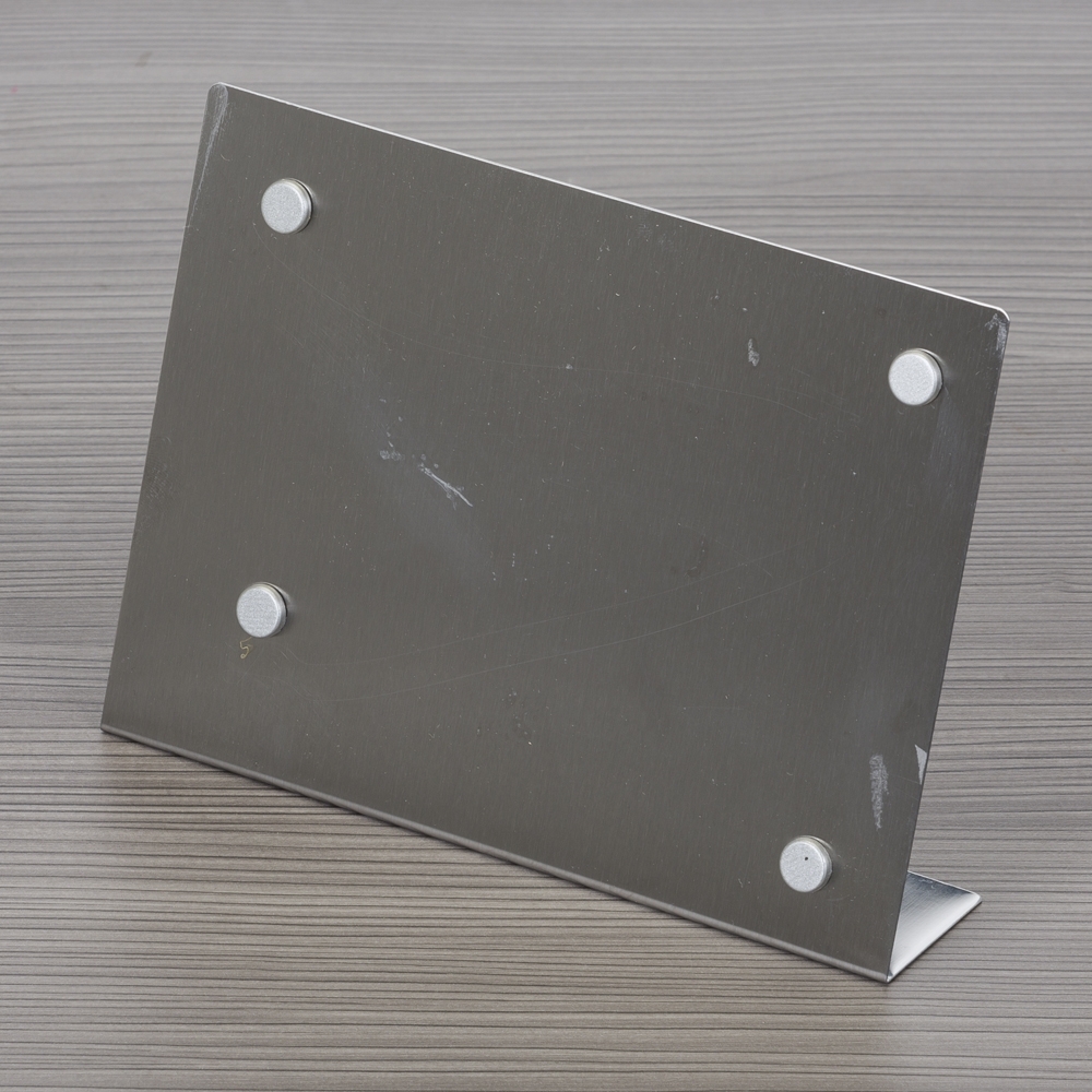 Porta retrato 10 x 15 em inox escovado, modelo chapa metálica acompanha quatro “botões” imã e película protetora anti-risco.