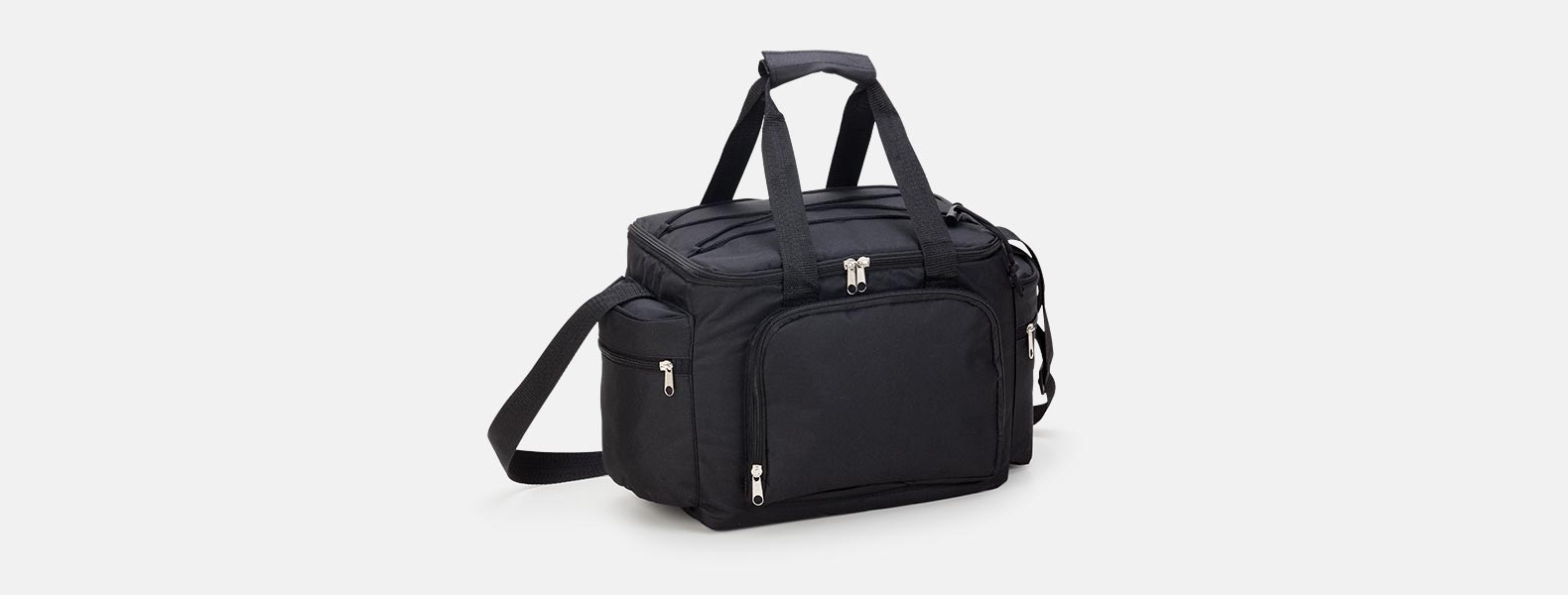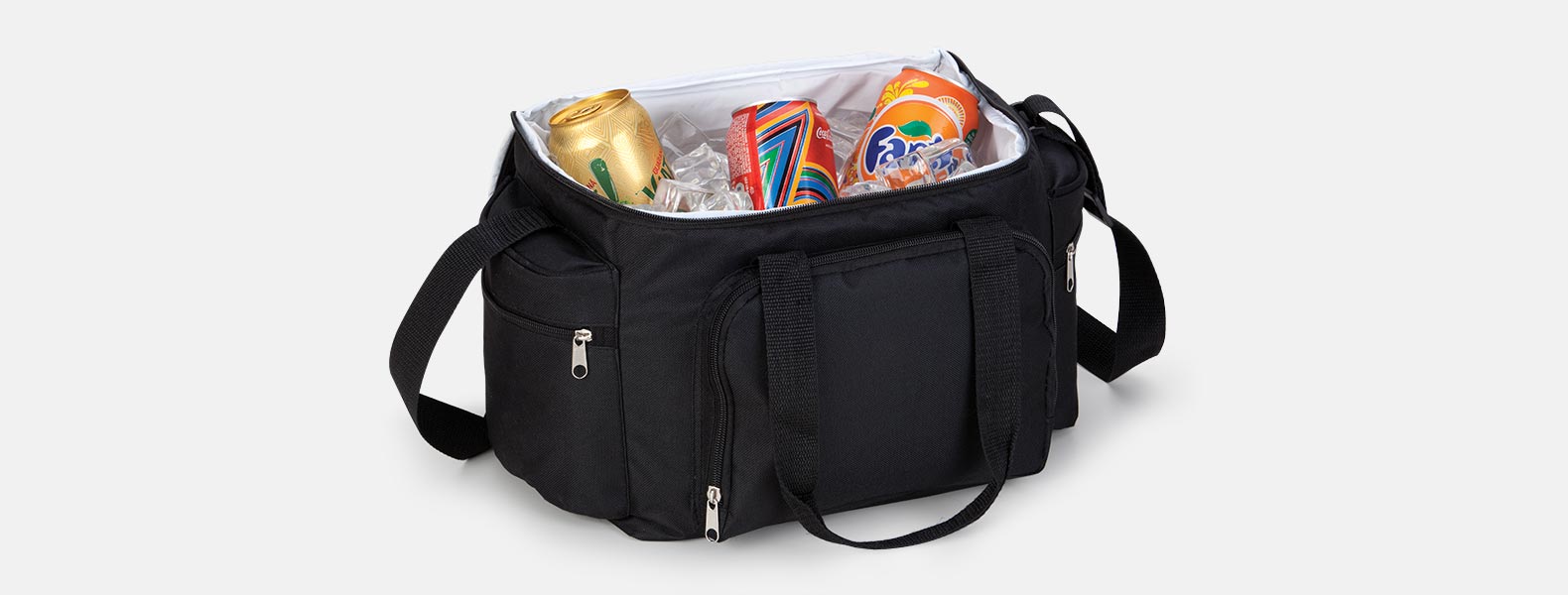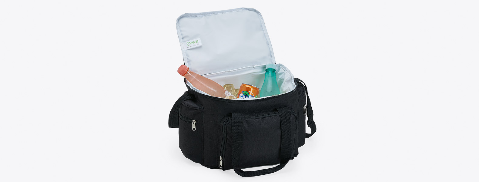 [vc_row][vc_column width=”2/3″][vc_column_text]Confeccionada em polyester e revestido em PEVA branco a prova d’água, atóxico e mais sustentável que o PVC, possui alças de mão e ombro, um bolso frontal, dois bolsos laterais com zíper e elástico superior trançado. O tempo médio de conservação para frio são de 10 horas, para quente são de 3 horas. Capacidade: 14 litros / Cerca de 12 latinhas de 350ml.