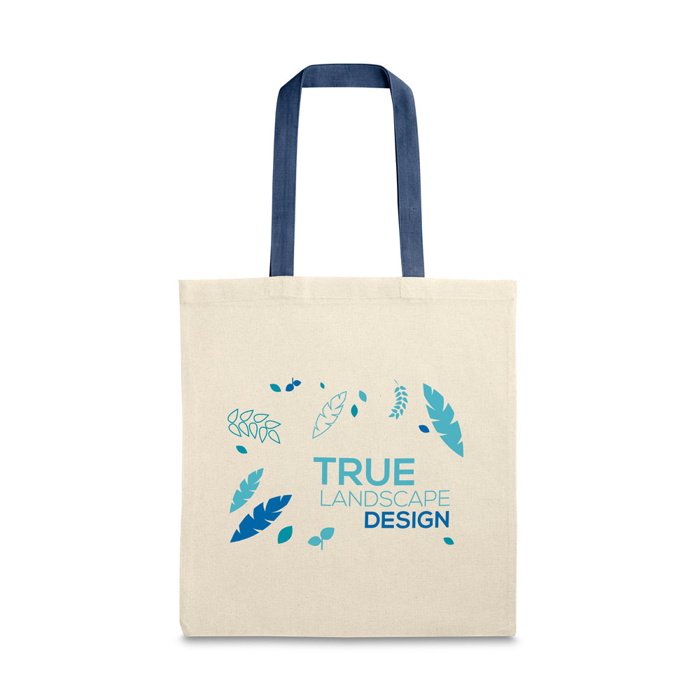 Sacola em 100% algodão (140 g/m²) com alças de 60 cm. 375 x 415 mm