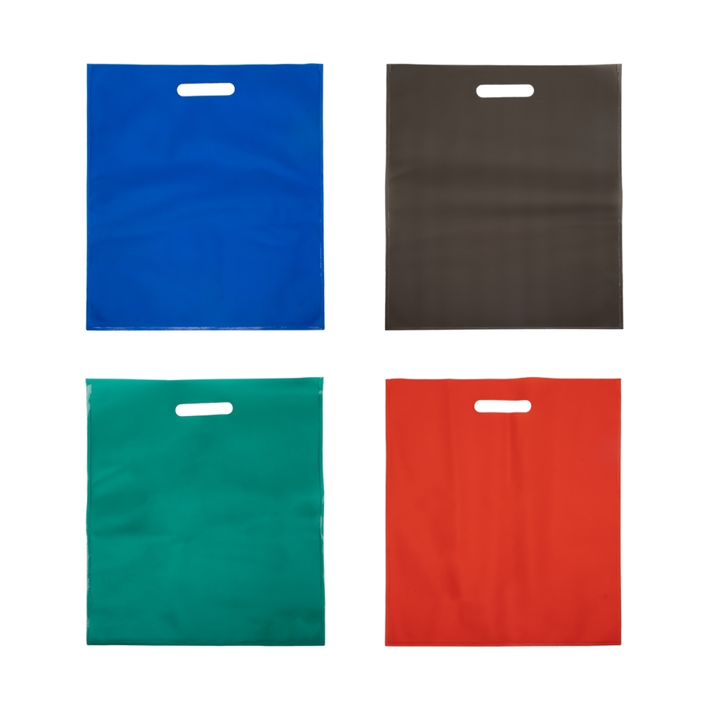 Sacola confeccionada em PVC sem alça.