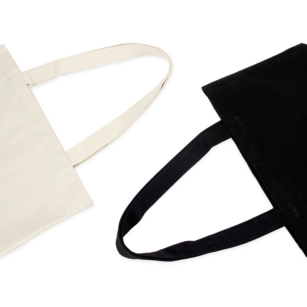 Sacola em lona resistente a respingos dágua. Possui duas alças fixadas por costura interna.