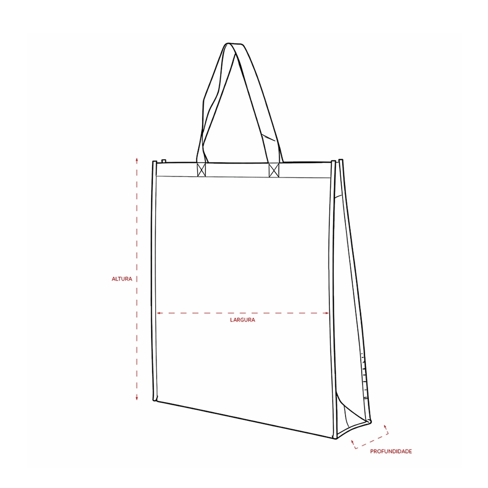 Sacola confeccionada em TNT com revestimento externo laminado e duas alças costuradas.