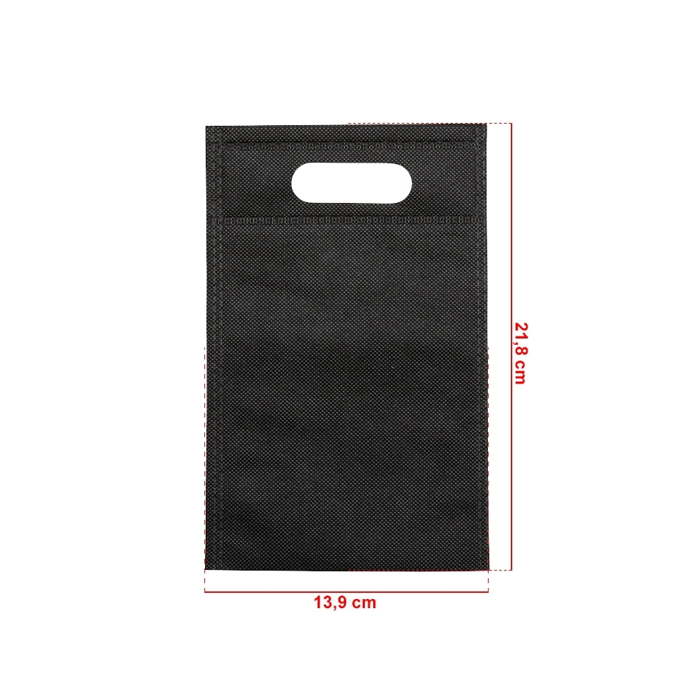 Sacola TNT pequena sem alça. OBS.: PEDIDOS APENAS MÚLTIPLOS DE 100 PEÇAS! Altura :  21,8 cm Largura :  13,9 cm Medidas aproximadas para gravação (CxL):  16,6 cm x 12,4 cm Peso aproximado (g):  5