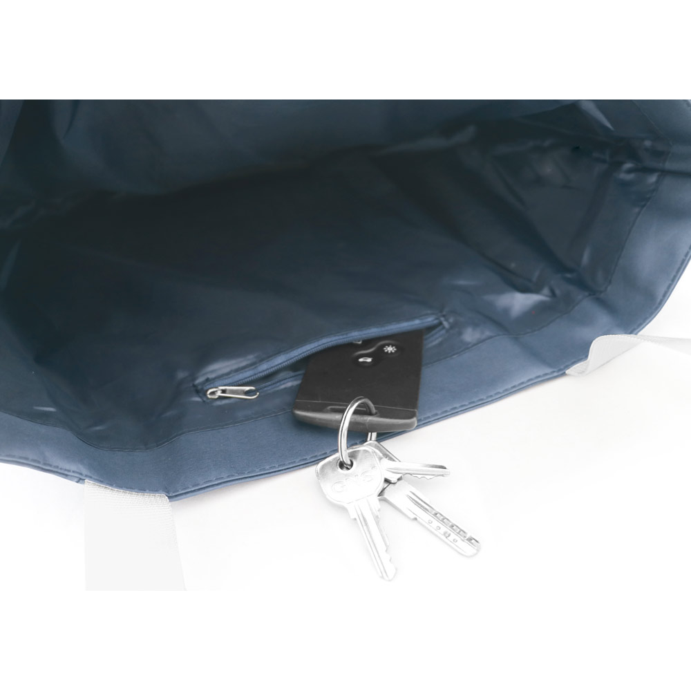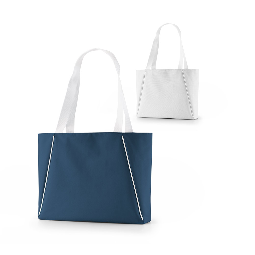 Sacola de praia em 300D com bolso interior. Alças em webbing de 70 cm. 450 x 300 x 80 mm