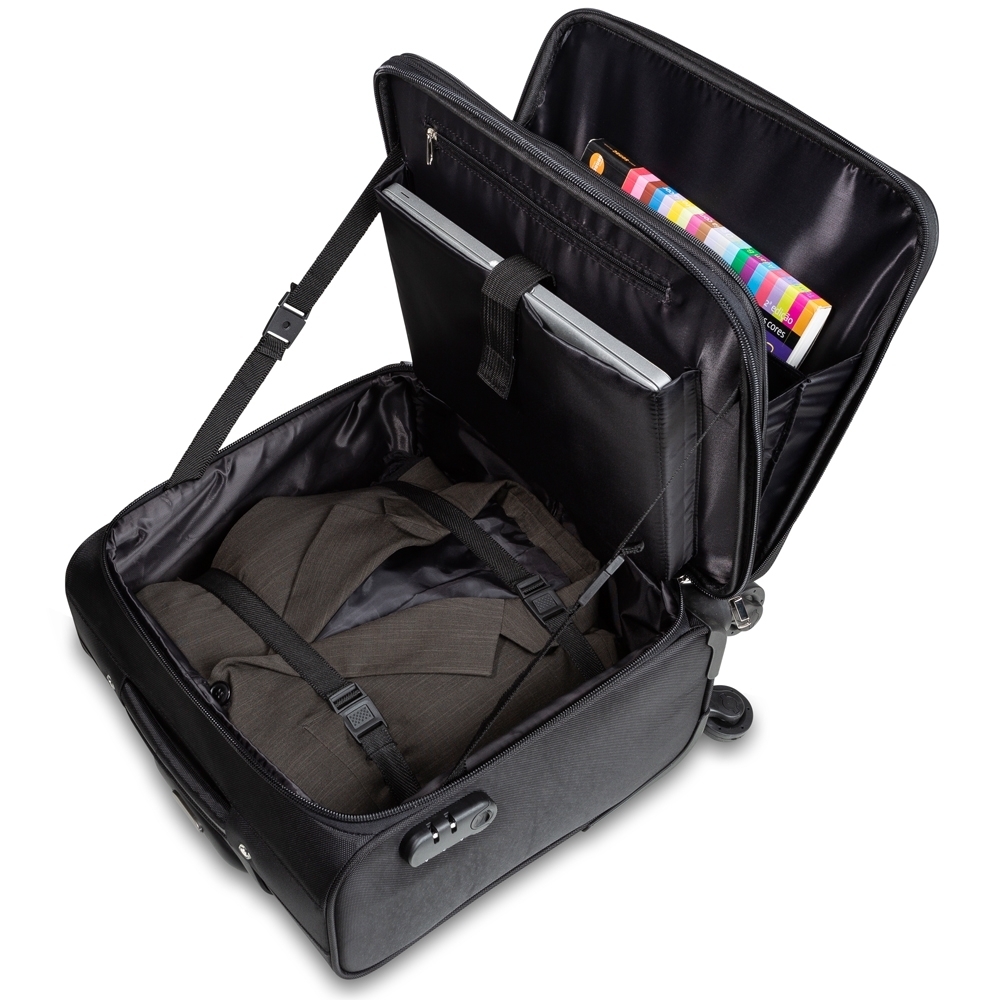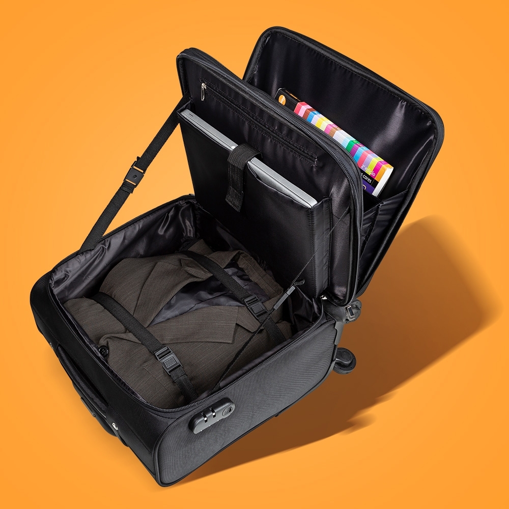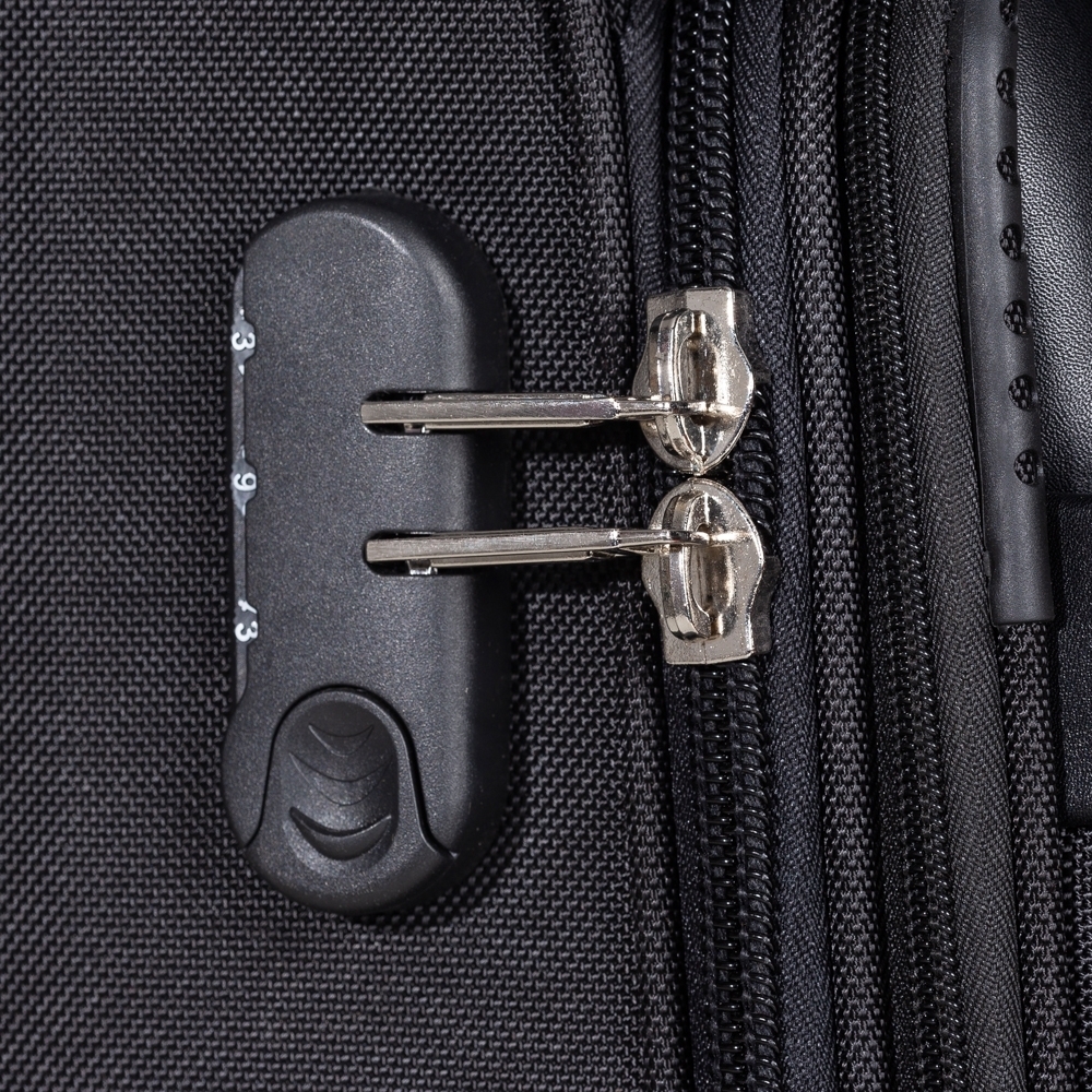 [vc_row][vc_column width=”2/3″]n[vc_column_text]Mala de viagem com cadeado TSA. Confeccionada em nylon de alta qualidade, possui alça de mão, puxador retrátil com estágios para regulagem e botão acionador, cadeado de segredo, sistema com 4 rodas multidirecionais, identificador de bagagens na parte traseira, bolso frontal com detalhe externo em couro sintético e bolso superior médio com divisória. Compartimento principal com bolso para notebook até 13.3 polegadas, bolso pequeno e forro com zíper. A parte interna conta com um sistema organizatório através de alças de nylon ajustáveis, quando utilizadas impedem que as roupas se movimentem dentro da mala durante o transporte. Acompanha plaquinha para personalização. Utilização do cadeado: para criar um segredo pressione e segure o botão “push”, crie a numeração desejada e em seguida solte o botão para assumir a codificação criada, repita o mesmo processo sempre que necessitar fazer alguma alteração. Altura : 48 cmn Largura : 42 cmn Profundidade : 27 cmn n n n Medidas aproximadas para gravação (CxL): 1,2 cm x 4,8 cmn n Peso aproximado (g): 3039n Disponibilidade : Indisponíveln