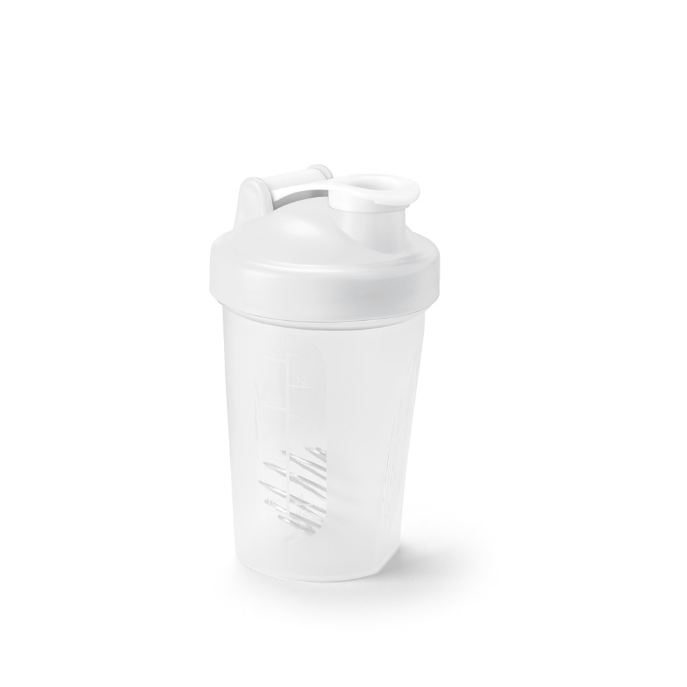 Shaker em HDPE com tampa flip top em PP. Incluso misturadora em aço inox e escala de medição até 400 mL. Capacidade até 550 mL. Caixa branca 94654 vendida opcionalmente. Certificação EU Food Grade. ø93 x 160 mm
