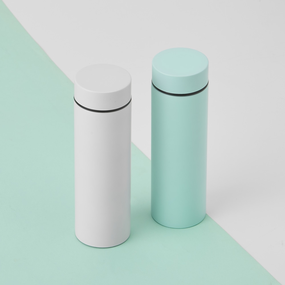 Garrafa térmica 240ml em inox com tampa rosqueável.