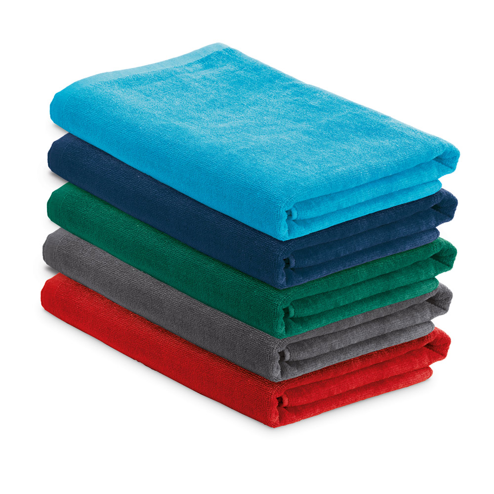 Toalha de praia em veludo de algodão (320 g/m²), disponível em várias cores. Fornecida com sacola em TNT (80 g/m²). 1500 x 750 mm | Sacola: 330 x 415 x 100 mm