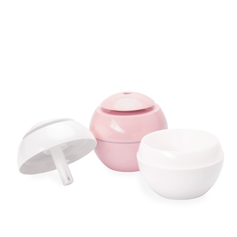 Umidificador de ar com construção em plástico, iluminação LED e reservatório de água com capacidade de até 200ml. Apresenta dois modos de névoa: contínuo e intermitente. Funciona apenas conectado a uma fonte de energia por meio de sua entrada USB-C. Acompanha filtro de algodão e cabo USB-C.