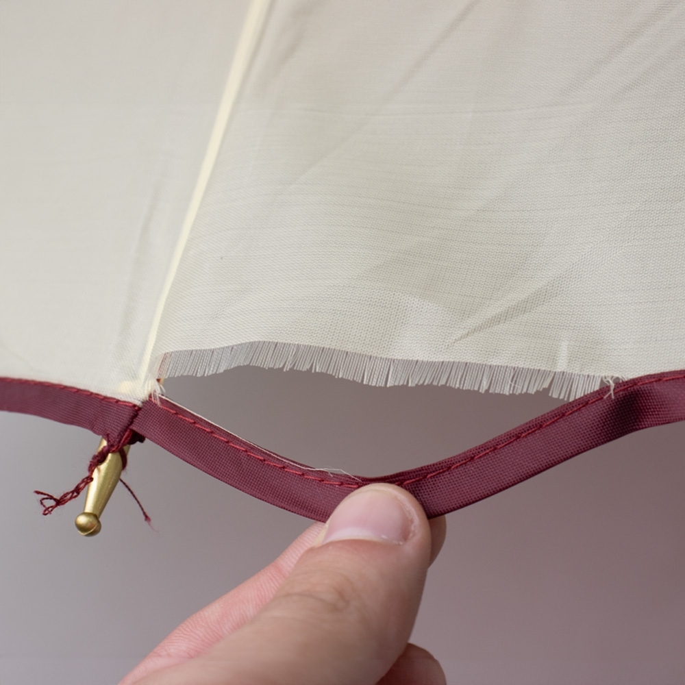 Guarda-chuva de poliéster com abertura automática, estrutura metálica com 16 varetas e pegador em madeira.