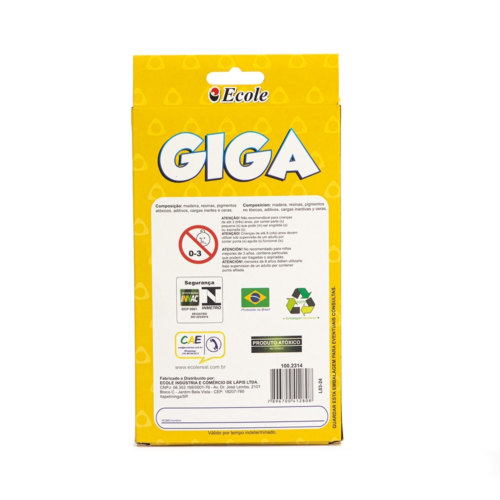 Lápis de cor triangular com 24 cores coloridas ponta de 4mm.